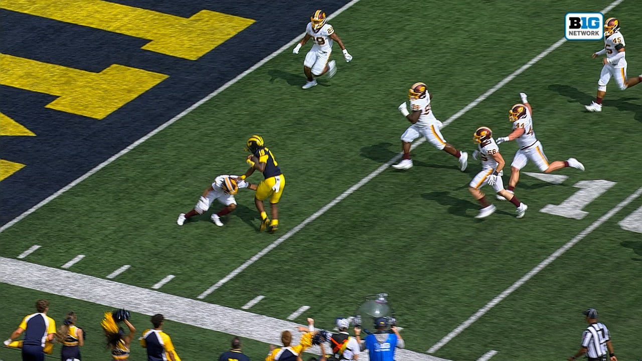 Bryce Underwoods apresuradamente dio un TD de 18 yardas para expandir la posición principal de Michigan Wolverines en el centro de Michigan Chippewas.