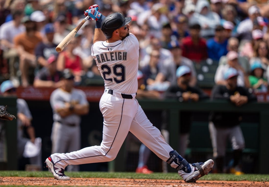 Cal Raleigh tenía dos veces en casa, el torneo 34 y 35 de la temporada, cuando los Marineros de Seattle derrotaron a la tarde de Pittsburgh Pirate 6-0 en el partido inaugural de una serie de tres juegos.