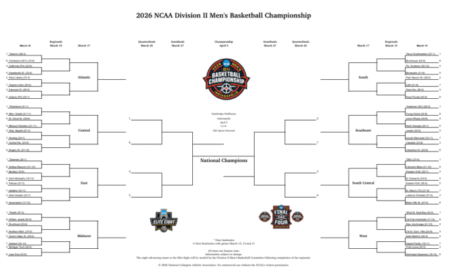 Cuadro imprimible del torneo de baloncesto masculino de la División II de la NCAA 2026