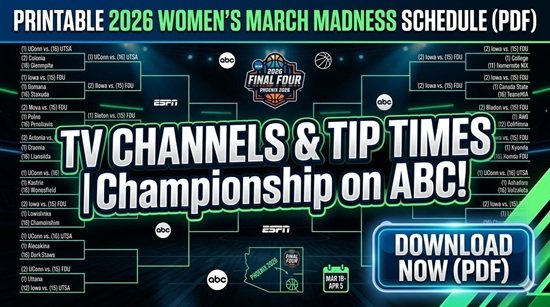 El Torneo Femenino de la NCAA 2026 comienza el miércoles. 18 de marzocon el Primer premio y finalizando con el Campeonato Nacional el día domingo 5 de abril en Fénix. Cada juego se transmitirá en la familia de redes ESPN (ESPN, ESPN2, ABC, ESPNU y ESPNews), y el juego por el título se transmitirá por abecedario..