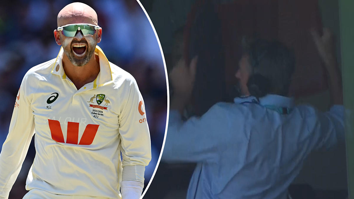 Nathan Lyon celebra el despido de Ben Duckett. Getty