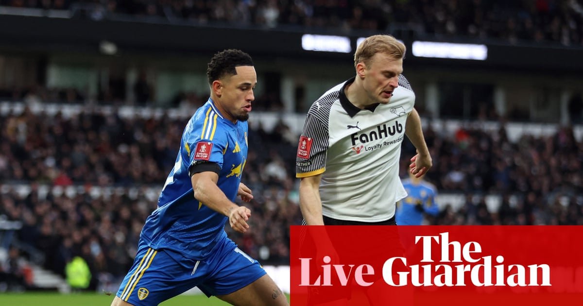 As the defender Callum Elder described it this week, Derby v Leeds is “an amazing fixture”. Stuffed full of history and storylines, from the scraps of the 70s to the spy plots of Bielsa and Lampard, it is a game that never lacks a bit of needle. The rivalry renews in the FA Cup this lunchtime as John Eustace’s Championship side take on Daniel Farke’s Premier League team at Pride Park, where Elder expects a “fierce atmosphere”.