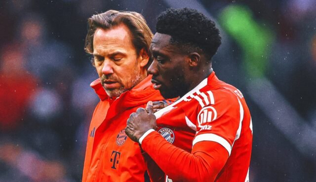 Canada captain Alphonso Davies went off with a hamstring injury during Bayern Munich’s Bundesliga win over Eintracht Frankfurt on Saturday.