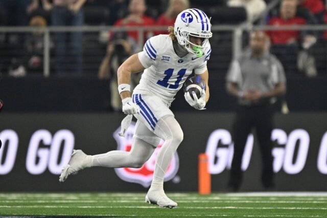 A lo largo de tres temporadas en BYU, el jugador de 21 años de Layton, Utah, tiene 98 recepciones para 1,327 yardas y siete touchdowns.