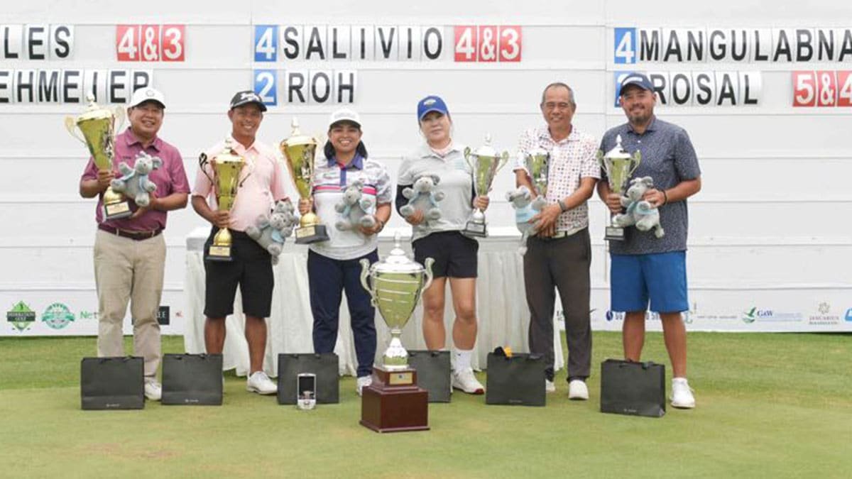 Las tres personas prominentes aparecen en la cima de sus partes correspondientes después de cinco días de jugar bien en cuatro cursos del Eagle Ridge Golf Club en Treece Martirez, Cavite, jugando en un evento de monitoreo para coronar a los mejores campeones del club del país.