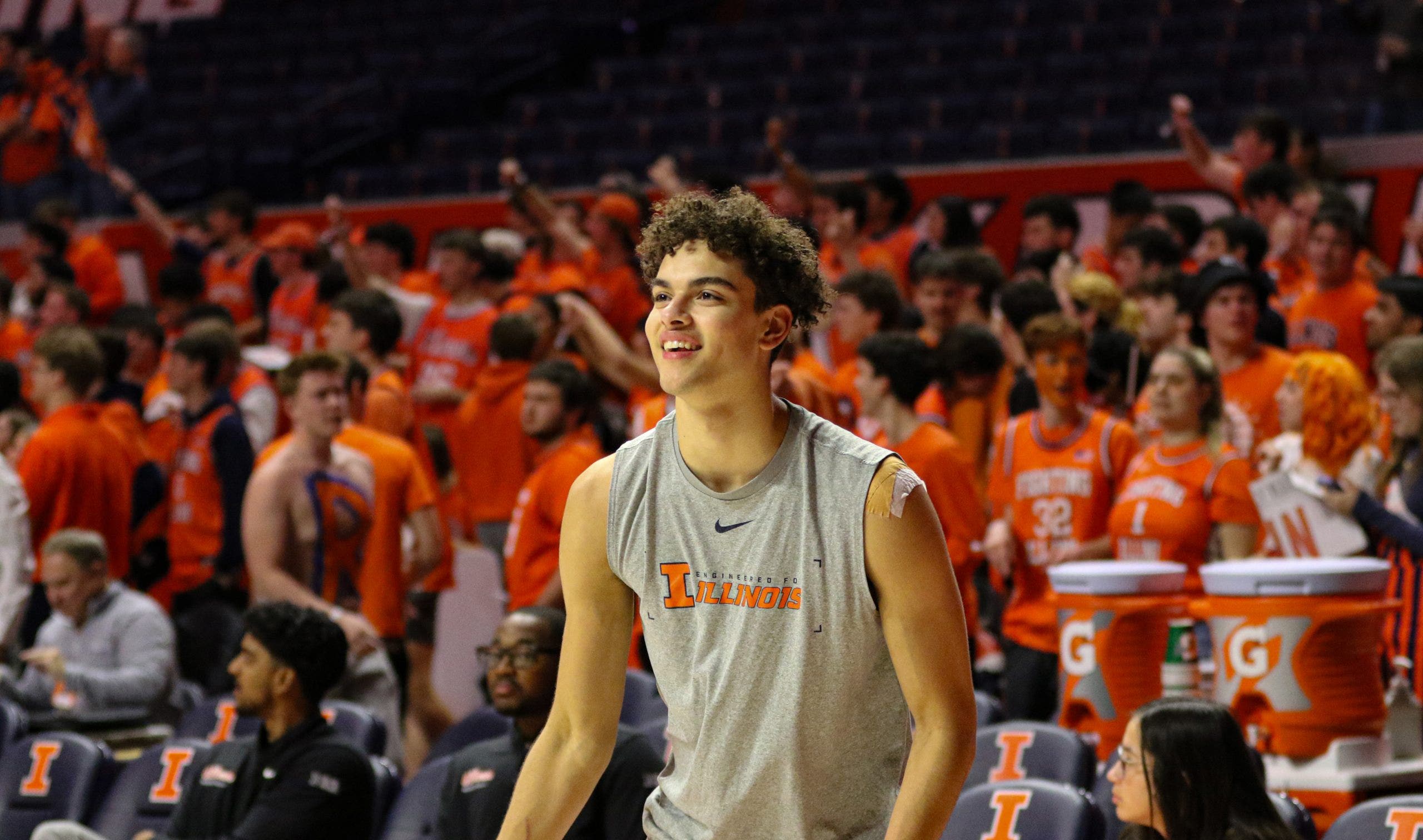 Apparently, the signs weren’t quite enough for Illini fans to get their angst off their chest. So, 10 members of the Orange Krush student section decided to spell it out. When the paint dried, the message read: “Mirk > Morez,” referring to Illinois freshman forward David Mirkovic, who replaced Johnson in the lineup.