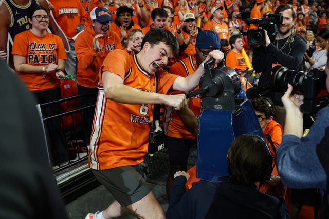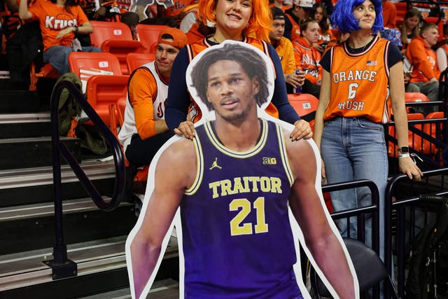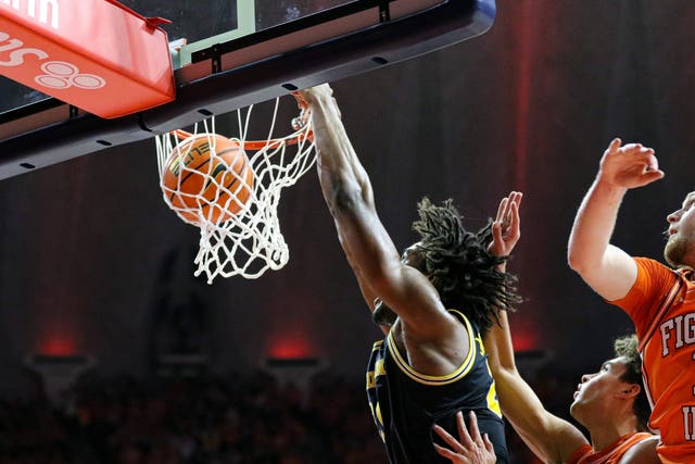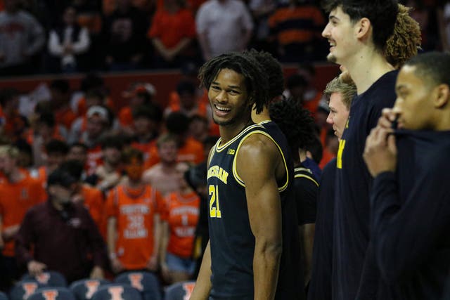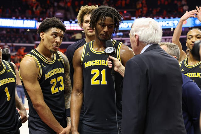 Johnson finished with 19 points and 11 rebounds for his seventh double-double, leading the charge to deliver his former team’s largest loss of the season. Afterward, with teammate Lendeborg mugging it up right next to him, Johnson remained stone-faced while telling FOX Sports’ Bill Raftery that he was just happy to clinch the Big Ten title. But for Johnson and the Wolverines, this was a statement game. As Illinois coach Brad Underwood said post-game: “They took the belt off and beat our behinds with it.”
