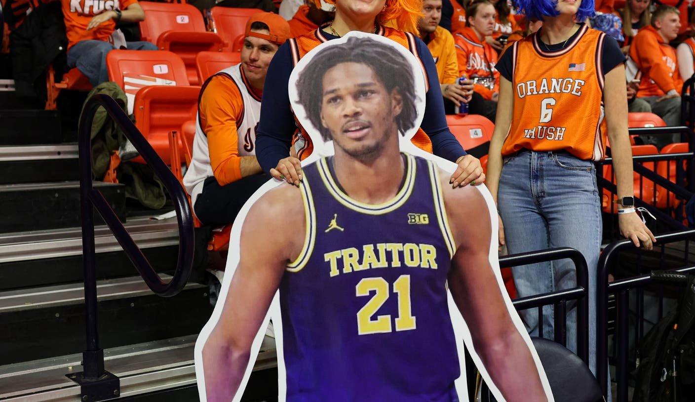 Inside the arena, Illini fans didn’t hold back their feelings toward ex-patriot Johnson, though the message was delivered with a Midwestern smile. The former Illinois Mr. Basketball verbally committed to the Illini early in his high school career and, as a freshman, averaged 7.0 points and 6.7 rebounds in 30 games. Then, a week after the season, he transferred to Michigan.