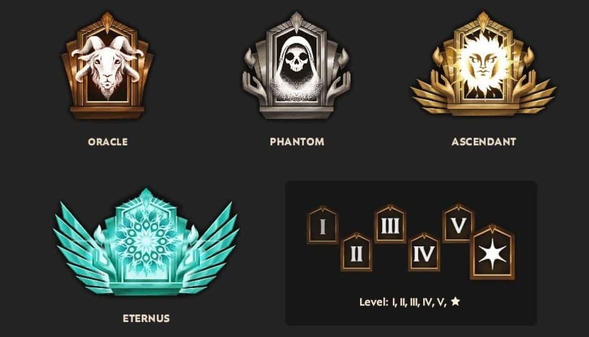 Además, cada medalla tiene subdivisiones. Los jugadores suben de nivel del 1 al 5 y, finalmente, las estrellas. Los jugadores que no tengan suficientes juegos serán colocados temporalmente en un ranking llamado Obscurus.