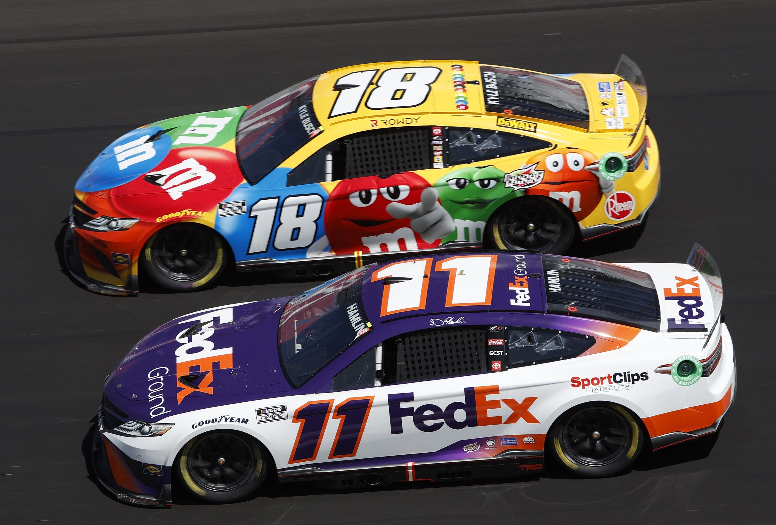 El día fue más feliz cuando Busch (No. 18) y Hamlin (No. 11) corrieron como compañeros de equipo.
