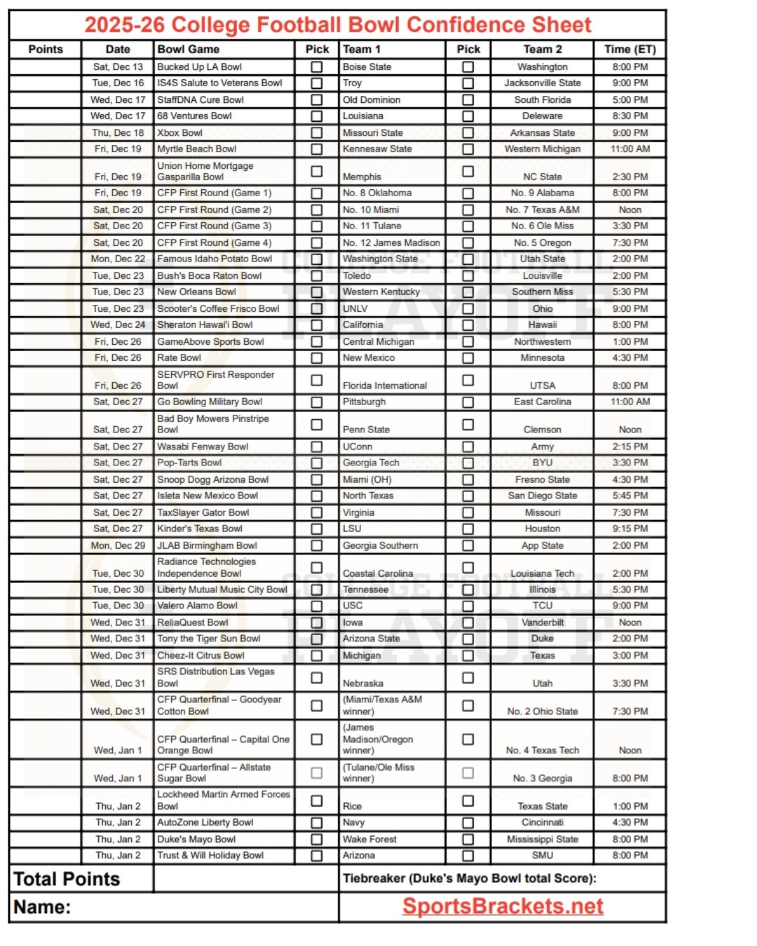 Aquí está nuestro resumen de confianza del College Football Bowl 2025-26 para usted. El grupo CFP está oficialmente cerrado con los 42 juegos de bolos + juegos de primera ronda. Texas fue eliminado de los playoffs y se enfrentó a Michigan en el Citrus Bowl. La manía de los bolos está en marcha, las meteduras de pata son candentes (¿Notre Dame vuelve a salir?) y el grupo religioso es donde está la verdadera acción. toma el nuestro Set de piscina Confidence Bowl 2025-26 Para dominar tu torneo: