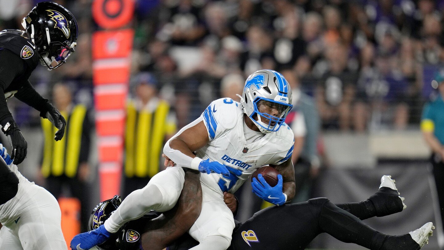 El león fue respaldado después de que la persona que regresó al despeje Kalif Raymond tomó decisiones malvadas para arrestar al despeje de Jordan Stout en su nivel de 3. Logró 4 yardas, pero DJ Reed los apoyó aún más castigados.