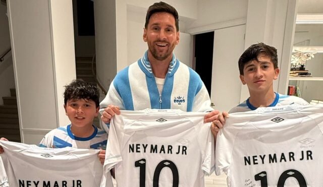 Neymar and Santos have sent signed No.10 shirts to Lionel Messi and his sons, Thiago, Mateo and Ciro, highlighting the two stars’ favored shirt number. The duo starred together at Barcelona and later linked up again at French giants Paris Saint-Germain and they have remained good friends ever since. A social post from Santos praised both Messi and Neymar alongside all-time Brazil great Pele.