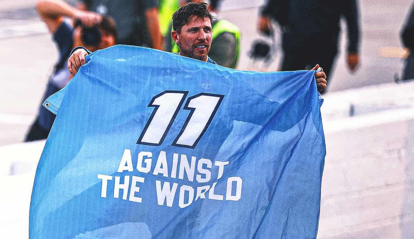 Denny Hamlin continued to play the role of the heel as he displayed an “11 Against The World” flag after a victory at Martinsville.