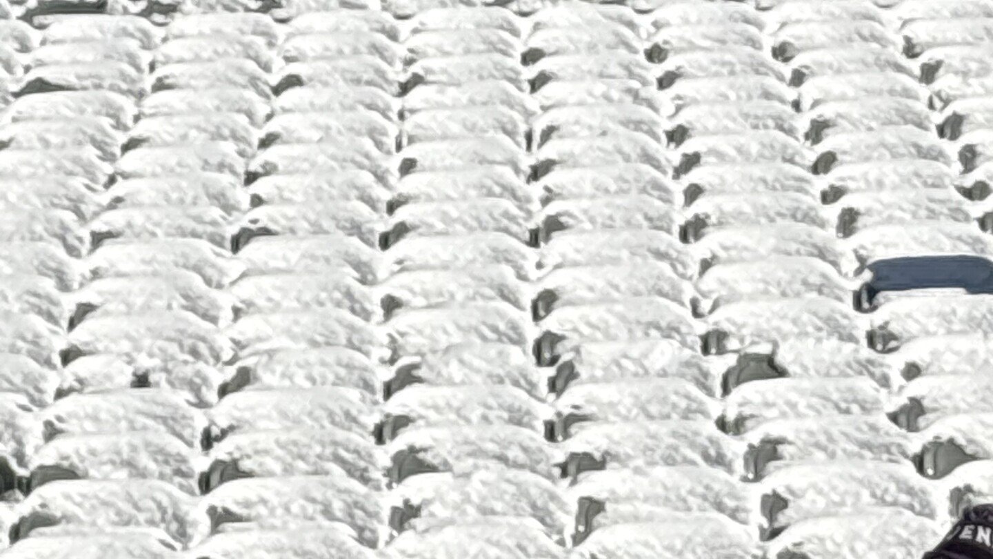 La foto adjunta fue tomada desde el campo, antes del partido. Al parecer nadie pagó por los asientos del estadio Paycor para limpiar la nieve.