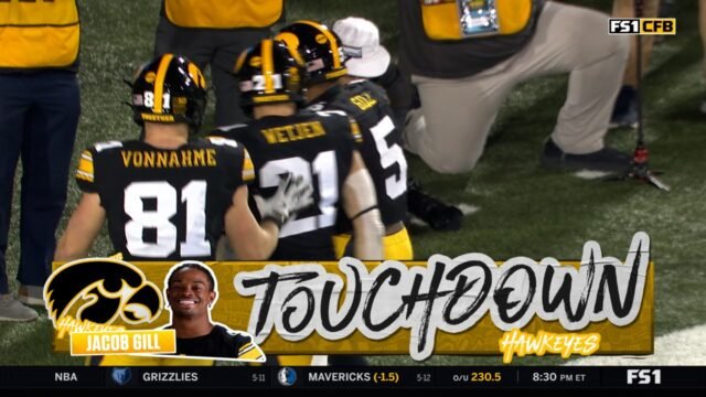 Mark Gronowski de Iowa Hawkeye conectó con Jacob Gill para un touchdown de 13 yardas que terminó el juego para los Michigan State Spartans.