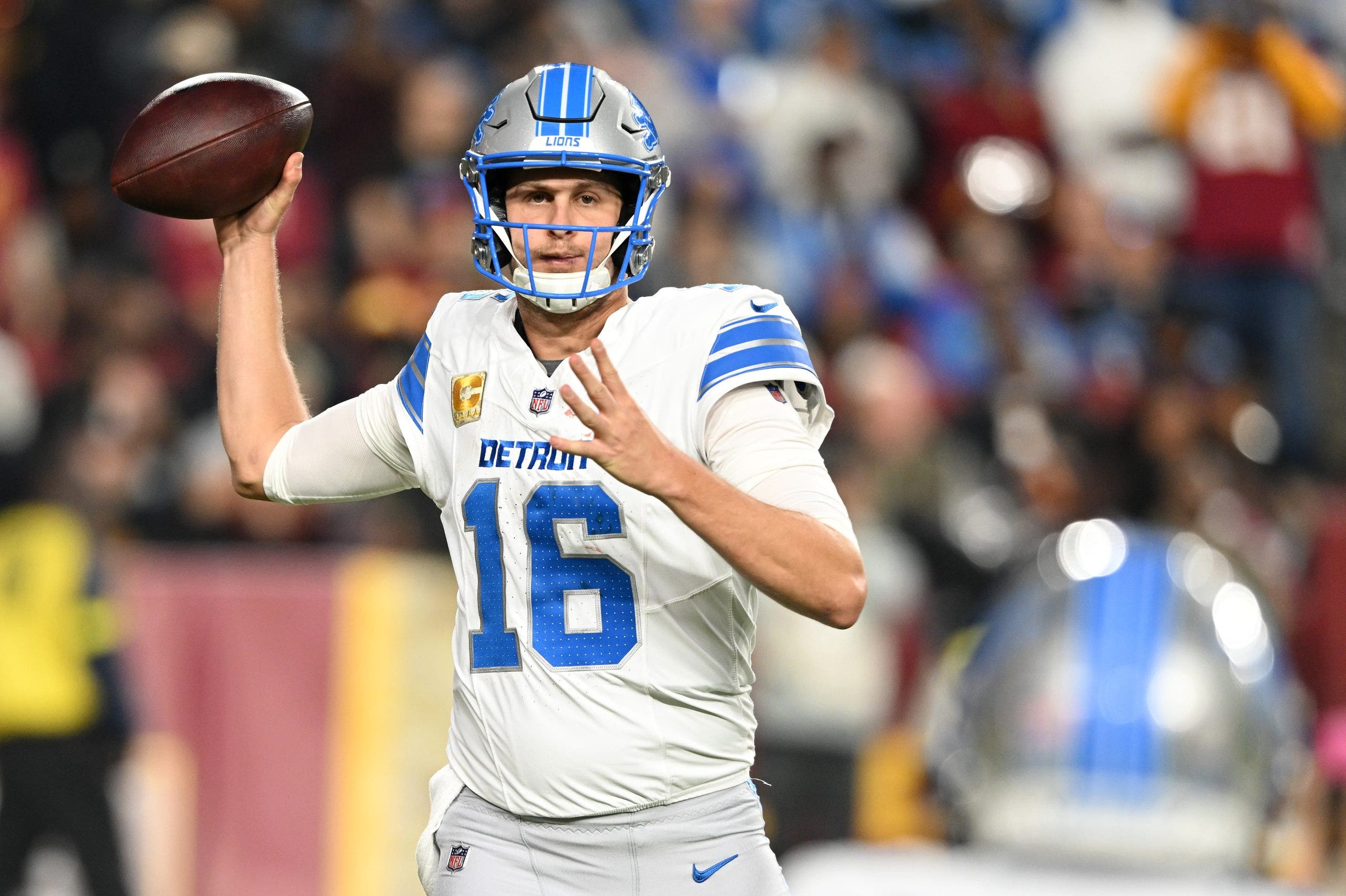 Jared Goff and the Lions’ offense had one of their best performances of the season in their 44-22 victory over the Commanders in Week 10. (Photo by Greg Fiume/Getty Images)