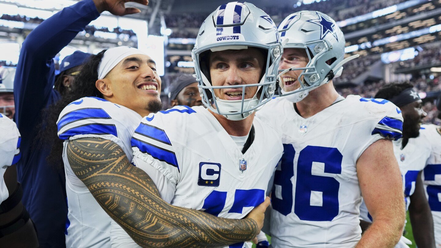 Cuando los Cowboys están en la posición para un objetivo de 64 pitch, ¿qué está haciendo el pateador Brandon Aubrey?
