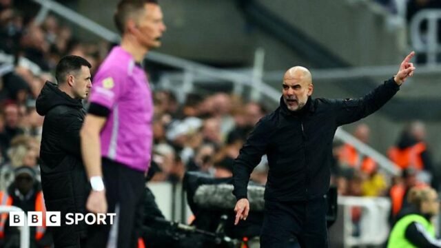 Guardiola recibió una tarjeta amarilla después de enfrentarse al cuarto árbitro Lewis Smith en la línea de banda en St James’ Park después de que Kieran Trippier cometiera una falta sobre Jeremy Doku del Man City.