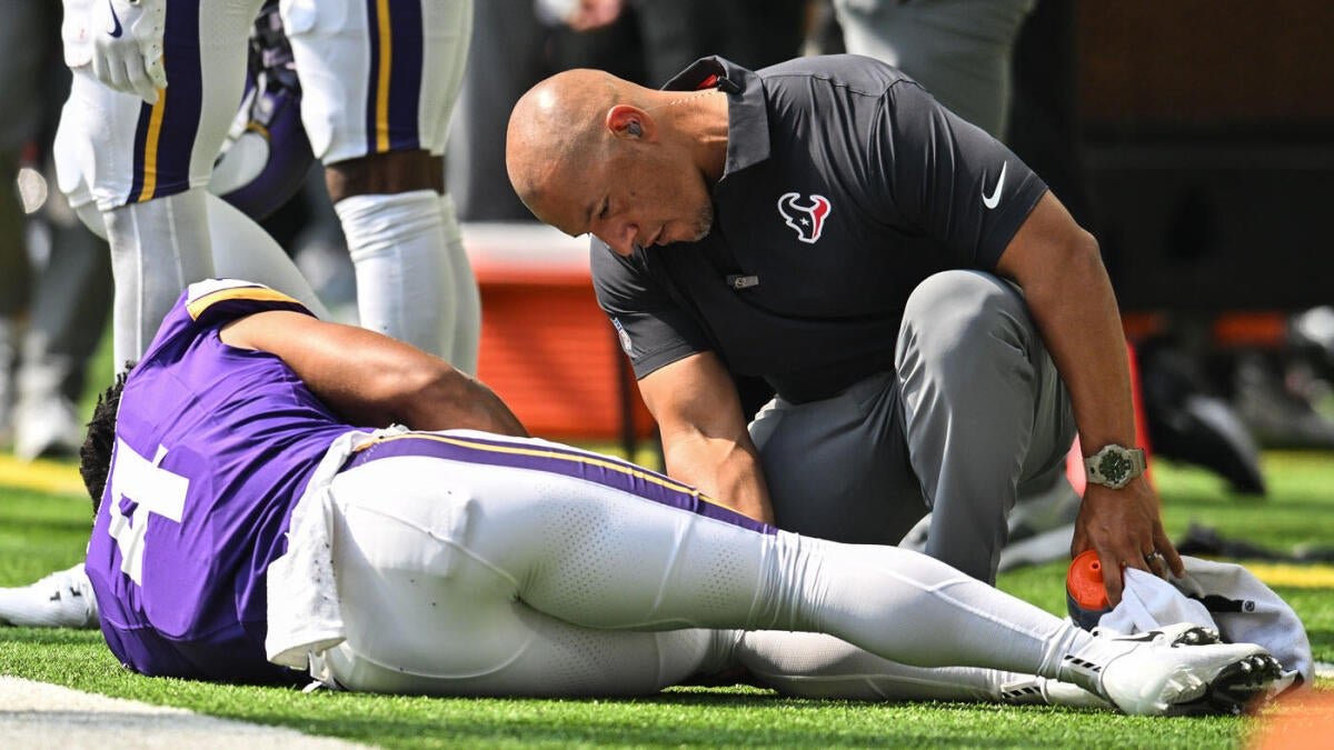 Vikingo vikingo Minnesota máquina de recolección amplia Rondale Moore La lesión de la rodilla dejada “bastante importante” mientras devuelve un partido en el segundo trimestre del partido presidencial el sábado en comparación con el sábado Houston TexansEl entrenador Kevin O’Connell dijo a los periodistas después del partido, Cada ESPN. El juego se detuvo por un corto tiempo cuando Moore fue descargado en un cochecito y retirado del campo.