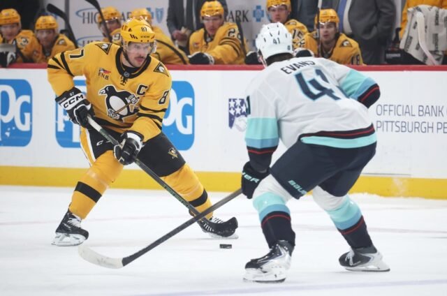 Sidney Crosby anotó un gol y una asistencia y Evgeni Malkin también anotó para los Penguins, que perdieron por segunda noche consecutiva en casa. El portero Sergei Murashov, en su tercera aparición, detuvo 18 de 21 tiros.