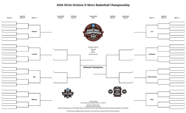 Marque en su calendario las siguientes fechas clave a medida que el torneo de baloncesto masculino de la División II de la NCAA de 2026 pasa de las ubicaciones del campus a las finales nacionales: