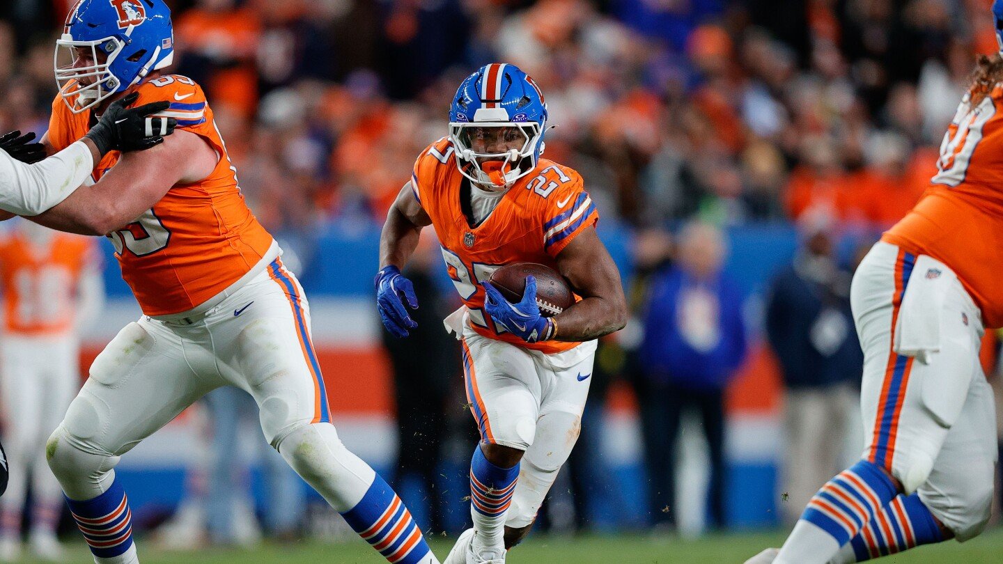 El corredor de los Broncos, JK Dobbins, cree que una lesión en el pie llevó a su colocación en la reserva de lesionados. Hubo una entrada ilegal con caída de cadera.. La NFL no lo ve así.