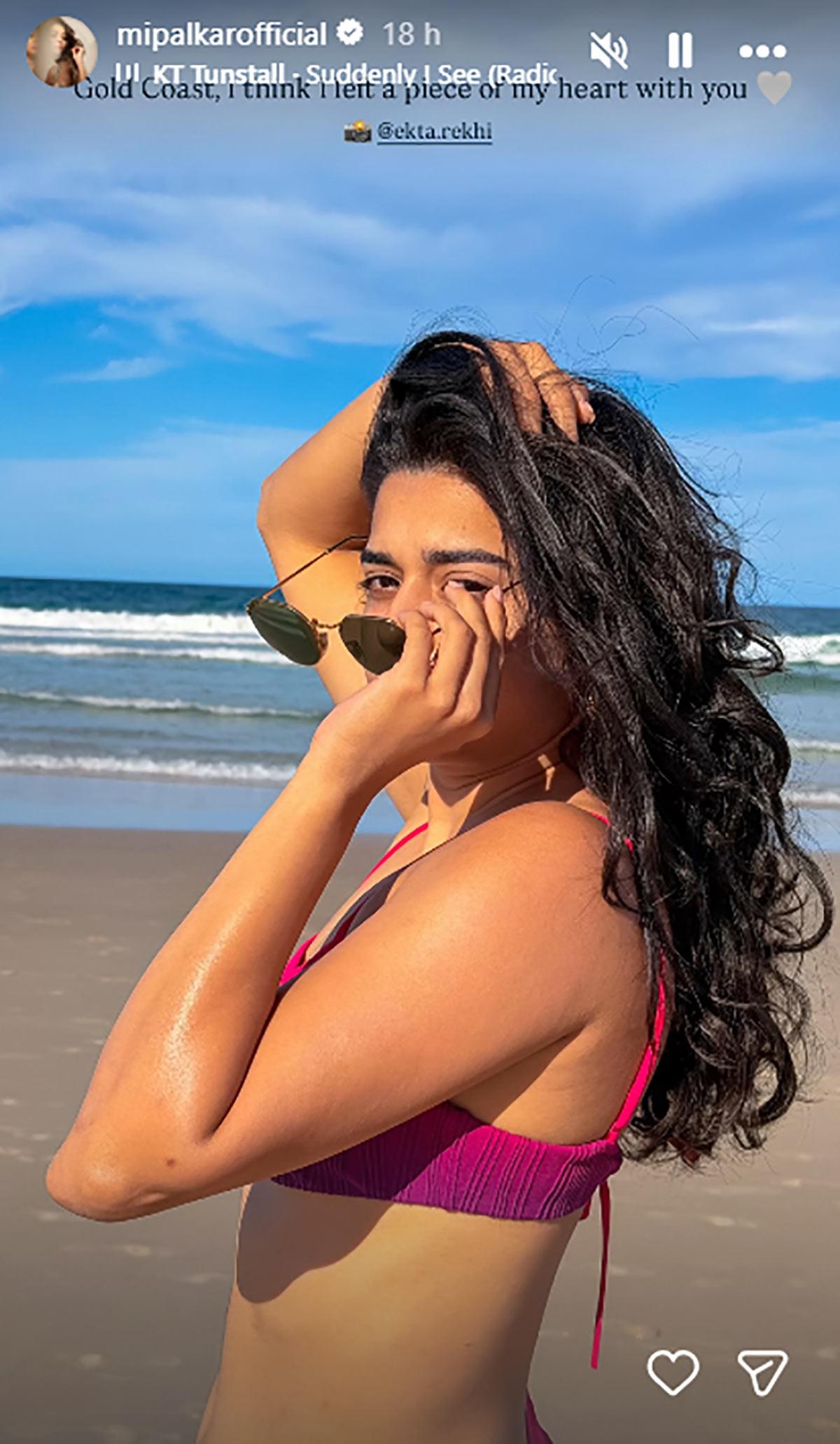 Mithila Palkar Tome el sol en la Costa Dorada de Australia.