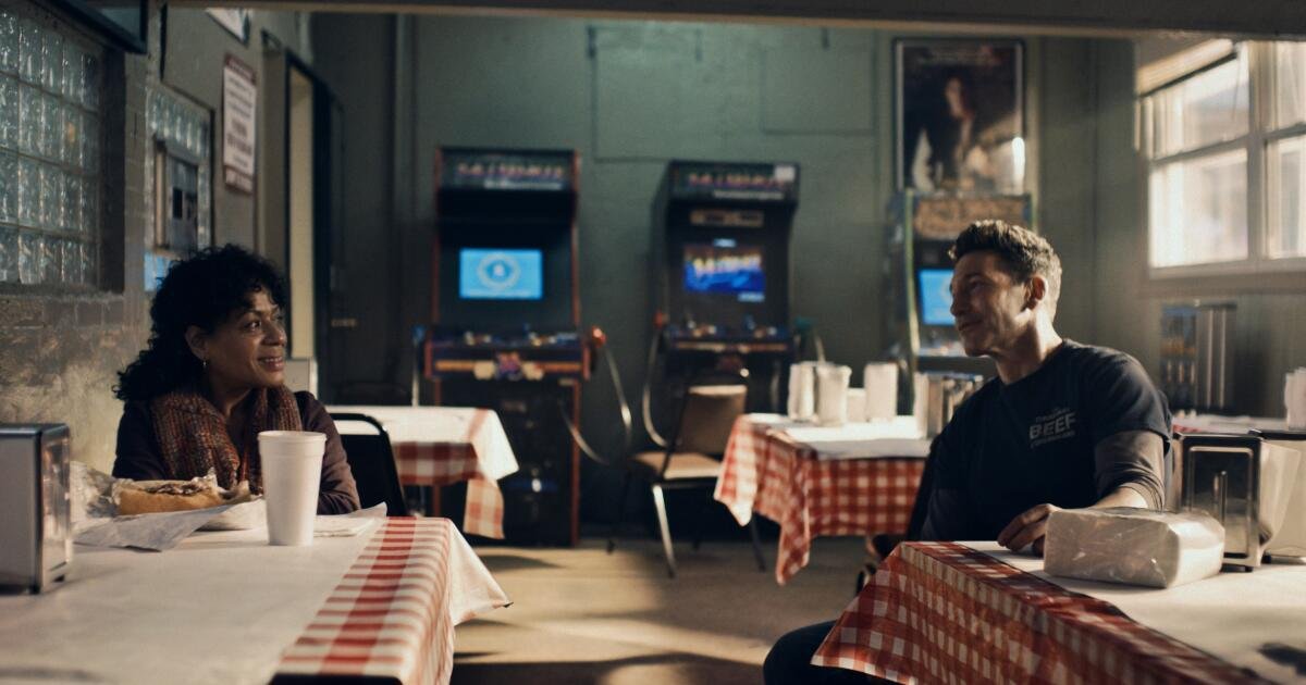 Aunque “servilletas” con las cargas frontales con el montaje muestra que Tina deja una compañía de dulces y busca un nuevo empleo: “Me gusta un Montez”, me dijo Adbiri. “Grita Eisenstein, grita Sam Raimi”-Lo que lo hace grande es la secuencia climática entre Colin-Jyas y Bernathal. Tina camina con carne de res, recibe un sándwich, se sienta e intenta disfrutar de la comida. Pero sus ojos estaban atados con lágrimas y frustraciones. Mikey se registra con él (así como quizás comida horrible) y pregunta sobre su grito. Un anuncio de Colon-Joyas-Libei Tina dijo: “Pero no, no como”, dice Tina. “Él y yo hablamos inmediatamente en el mismo idioma”, dijo Bernthal sobre la química entre él y Colin-Jayas. Esto se combina con el estilo distintivo de Adbiri, agregue la idea del descubrimiento de la escena: al principio, Tina y Mickey aún no se conocen, rara vez saben que se necesitan.