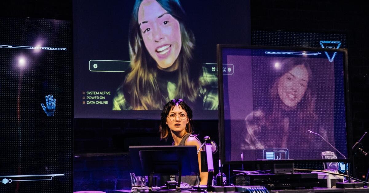 Annie Dorsen interpreta su pieza de IA “Prometheus Firebringer” en Redcat.
