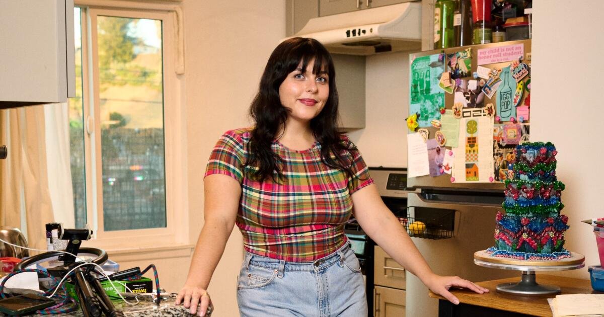 Los llamativos pasteles de Perkins suelen ser incómodos y absurdos. Y con una visión creativa tan precisa, uno pensaría que ya lleva un tiempo en ello. Pero la panadera nacida y criada en Los Ángeles comenzó a hacer pasteles en 2022, cuando un amigo le regaló un juego de moldes para pasteles. Afortunadamente, Perkins hizo su primer pastel con esos moldes para esa amiga: dos capas cubiertas con glaseado de colores pastel y rellenas de flores reales y frambuesas frescas. “Saqué el pastel en la fiesta y mucha gente en la fiesta me dijo: ‘¿Quién hizo eso? ¿De dónde sacaste un pastel como ese?'”, recuerda. La efectiva respuesta lo sorprendió, especialmente en Los Ángeles, donde Perkins dice: “La gente es muy rápida en retener los elogios”.