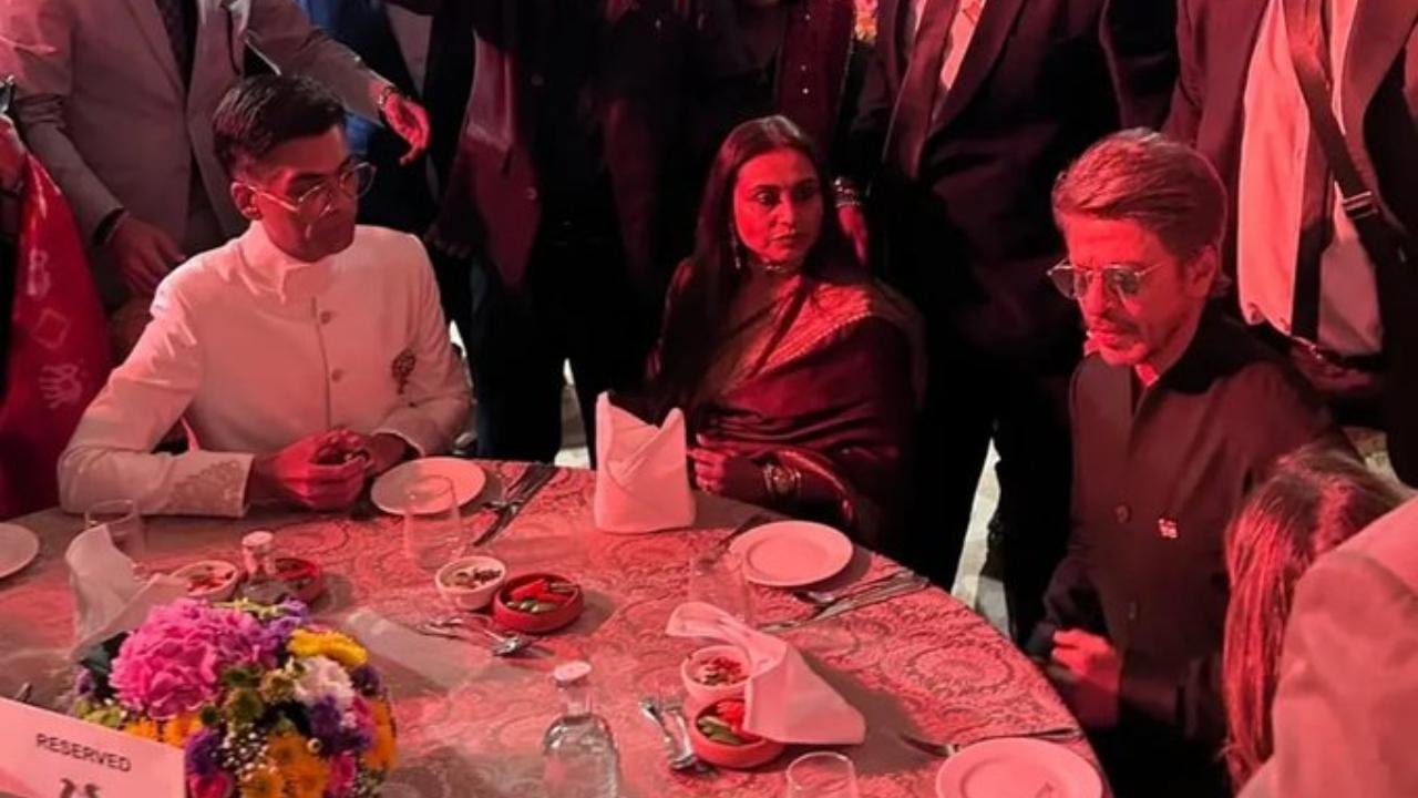 La cena pura de Shah Rukh Khan, Rani Mukherjee y Karan Johar se han vuelto virales en el Rashtrapati Bhavan, fascinando a los fanáticos en las redes sociales. La imagen muestra al trío compartiendo un momento cálido y alegre juntos, reflejando su cámara.