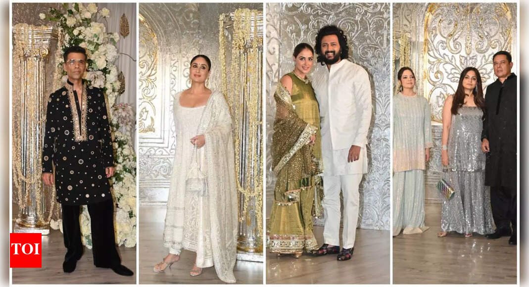 El diseñador de moda Manish Malhotra preparó la temporada de festivales al organizar una gran celebración previa al Diwali en su residencia de Mumbai el domingo por la noche. Star Studed Night son algunos de los nombres más importantes de Bollywood que llegaron a su festival: Kareena Kapoor Khan Y Hema Malini De Tigre Y Genelia de Shuja. Karina Kapoor giró la cabeza con una Etherial All-White Encychela, expresó breve elegancia mientras posaba para los paparazzi. La apariencia de su festival ha capturado completamente la conciencia de la temporada con su sencillez y gracia.Karan Johar Un diseñador negro lucía elegante con la kurta, lo tradicional logra el equilibrio perfecto entre la marea y lo resbaladizo. Tiger Shroff también mantuvo el clásico con un retórico kurt negro con pantalones a juego, añadiendo un toque moderno a su apariencia festiva.