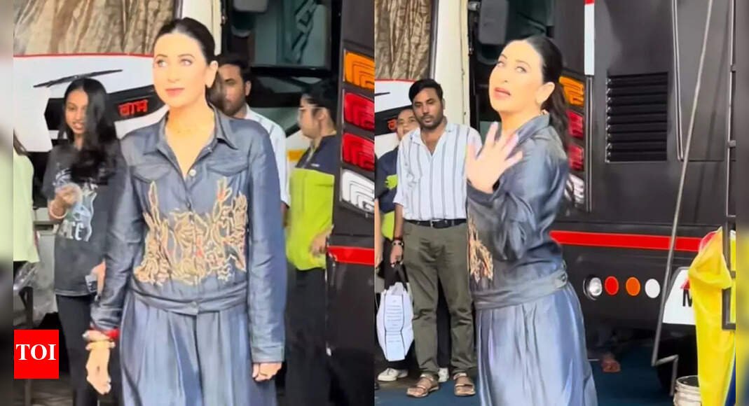Karisma Kapoor Piernas para disparar el 18 de agosto de tiempo pesado MumbaiSe veía elegante en un mono con su cabello atado a una cola de caballo ordenada. Cuando salía de su camioneta de vanidad, estaba esperando paparazzi. Rápidamente regresó adentro, pero pronto se movió nuevamente para posar en la ciudad húmeda nuevamente. A pesar de que sonrió por las fotos, lo llamó repetidamente pero se escapó.