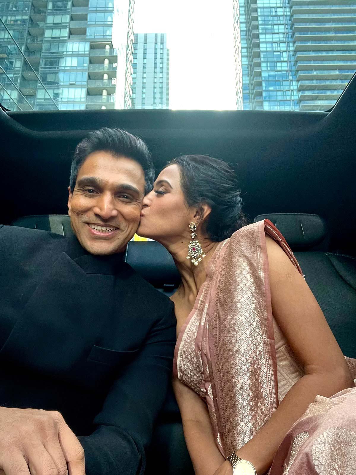Imagen: Pratik Gandhi y Bhamini Oza en Tiff. Fotografía: abuela Gandhi/Instagram, una cortesía de cortesía
