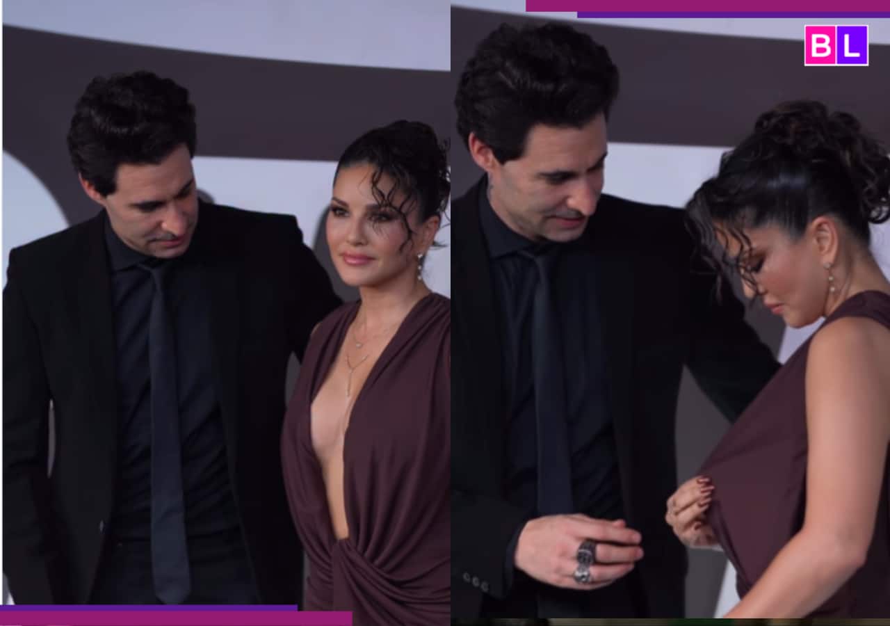 La noche glamorosa de Sunny Leone da un giro impactante, el tiempo se encuentra con un percance en el vestido…; El rápido movimiento de su marido Daniel Weber ha conquistado Internet [Viral Video]