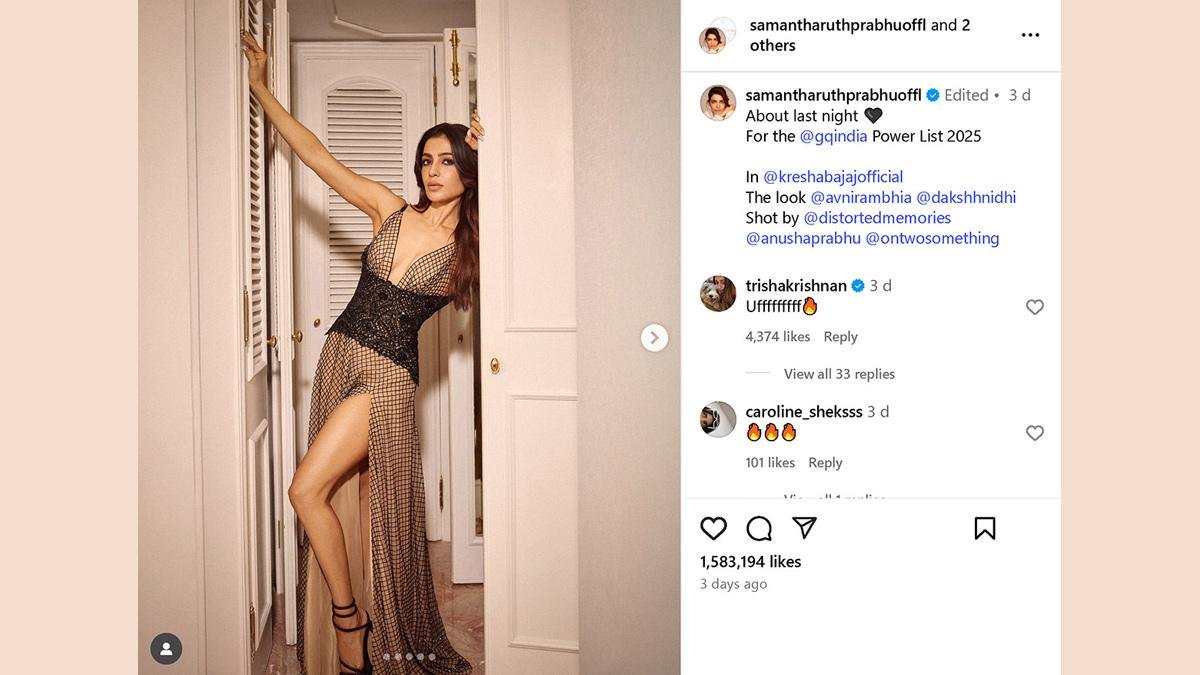Samantha Este es un escote profundo en Bajaj Bajaj y todas las cosas que presenta un muslo y un muslo son audaces y hermosas.