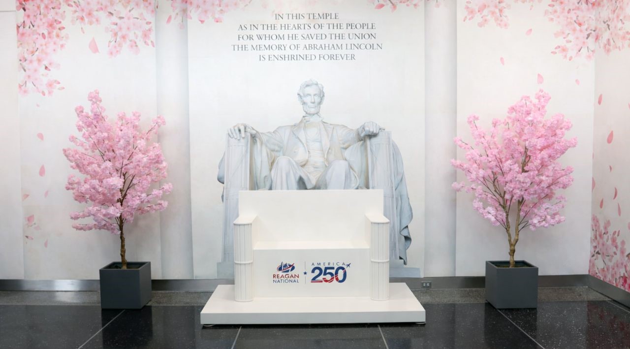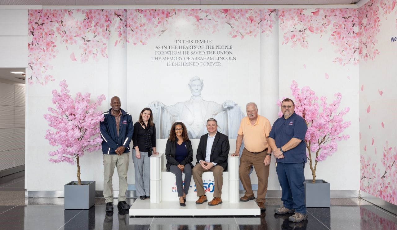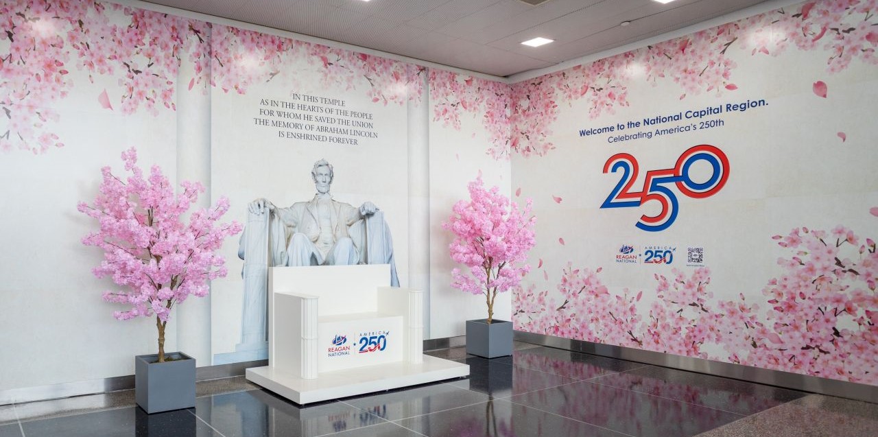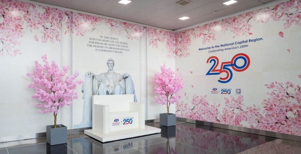 EE.UU. Los Aeropuertos Metropolitanos de Washington presentaron una instalación inmersiva inspirada en las flores de cerezo en el Aeropuerto Nacional Ronald Reagan de Washington y el Aeropuerto Internacional Dulles como parte de su celebración America 250.