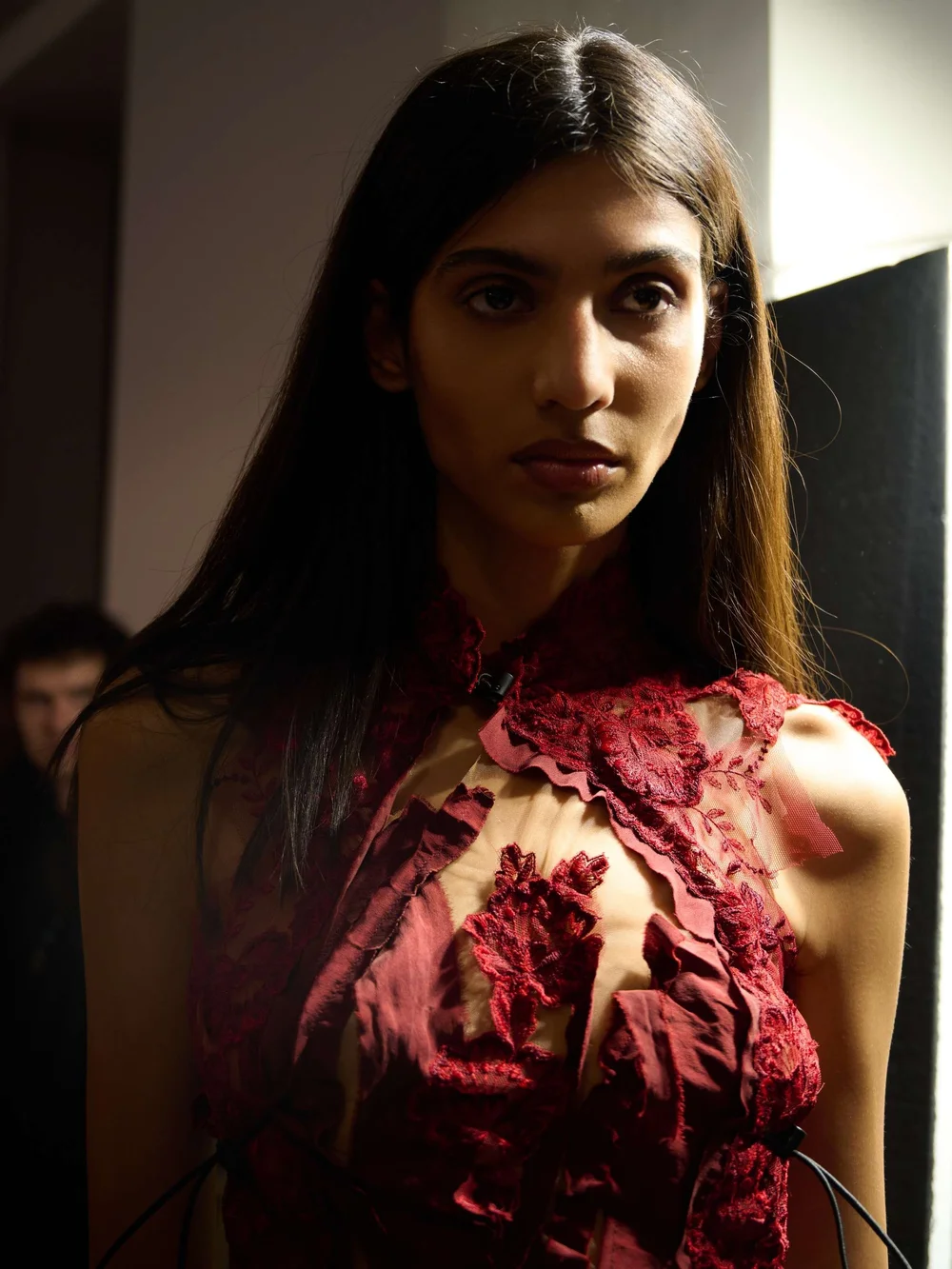 Para su colección otoño/invierno 2026, “Female Fool”, Christa Bush y Cosima Gadent tomaron prestado su nombre de la exposición de 2014 de la artista Isa Genzken, “Female Fool”. La referencia es precisa. Genzken se rodeó de amigos artistas varones y permaneció como la más salvaje de la sala, no a pesar de ellos, sino indiferente a ellos. Esta actitud está presente en cada mirada aquí.