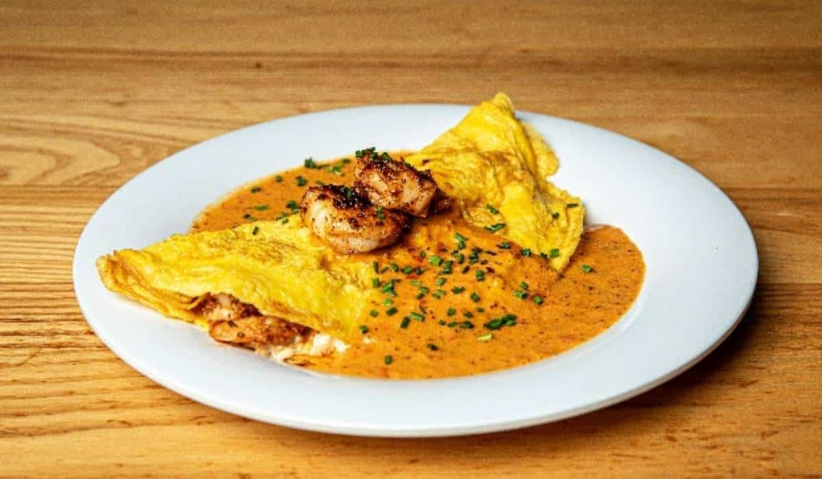 El Charleston Omelet ($14) está hecho con huevos marrones de gallinas criadas en jaulas, doblados sobre queso pimiento hecho en casa y camarones ennegrecidos, y luego se termina con caldo Lowcountry de la marca y cebollino fresco. El plato ofrece sabores abundantes y familiares con un amplio atractivo para los invitados, alineándose con el interés de los consumidores en más opciones de desayuno a base de proteínas que resulten reconfortantes sin ser pesadas.