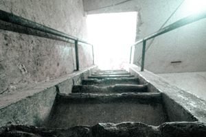 Al tirar de la pesada trampilla de metal se descubre un empinado descenso por una estrecha escalera. Los escalones son cortos y engorrosos, lo que obliga a los visitantes a descender con precaución. En la parte inferior hay una habitación estrecha y sin ventanas de unos 7 x 2 metros. Las paredes están revestidas con antiguas baldosas de cerámica que reflejan el sonido nítidamente, amplificando el eco y creando un efecto acústico amortiguador. Sólo la luz y el aire entran por la abertura de arriba.