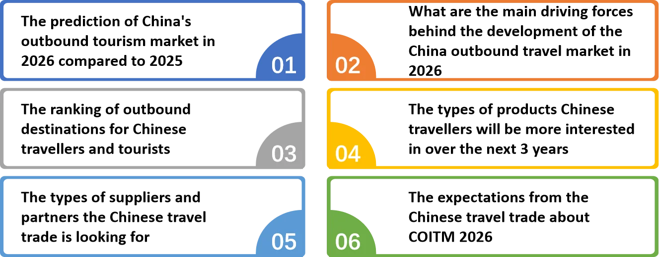 El estudio antes mencionado se llevó a cabo para obtener una comprensión más profunda de los conocimientos proporcionados por los profesionales de primera línea de la industria, así como de las últimas tendencias en el mercado del turismo emisor para 2026 en función de las preferencias de los operadores turísticos y agentes de viajes emisores en China.