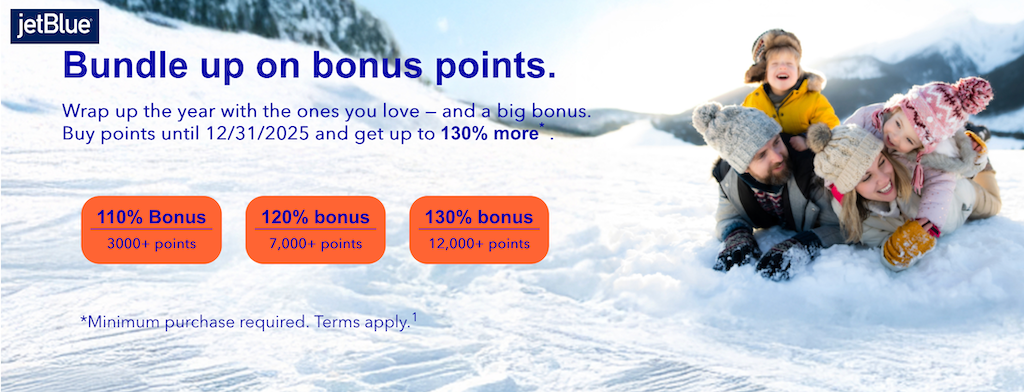 TrueBlue de JetBlue lanzó un Puntos de venta, compra y regalos con Bonificación de hasta 130% al comprar puntos Hecho por 31 de diciembre de 2025.