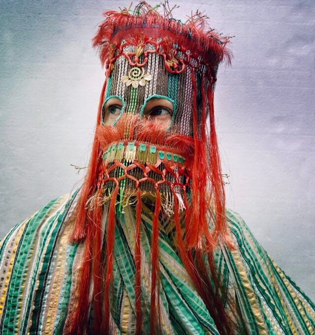 Si bien las máscaras de Magnhild Kennedy ciertamente ocultan la identidad de quien las usa, no lo dejarán en la oscuridad. Trabaja como Damsilvrau, una artista afincada en el este de Londres. Disfraces elaborados De una colección de materiales encontrados. Cuentas, plumas, flecos y muchos adornos atractivos se colocan sobre paneles de malla, a veces en forma de brillantes ojos de búho o de un tocado real dorado.