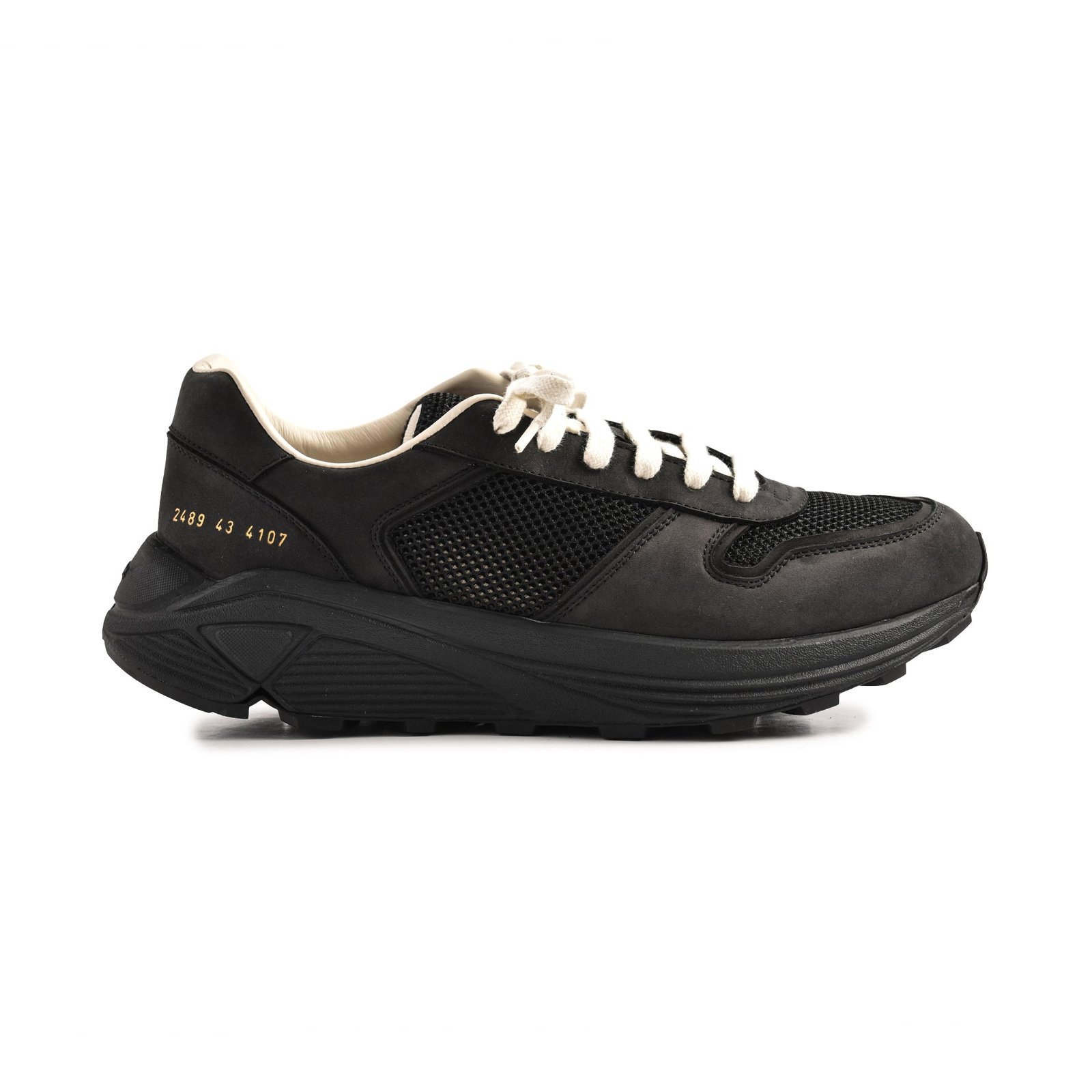 El diseño simple se combina con la artesanía de calidad en el corredor de malla Premium de Common Projects. Fabricado en Italia, este zapato combina malla transpirable con superposiciones de cuero de napa flexible, brindando estilo y comodidad. Un cuello acolchado y una plantilla extraíble brindan soporte adicional, mientras que una suela de goma con dibujo garantiza durabilidad. El número de serie preciso estampado en oro añade un toque sofisticado, haciéndolo perfecto para un look casual o deportivo.