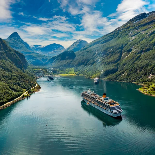 Imagen representativa: Fiordo de Geiranger, hermosa naturaleza en Noruega. Es un ramal de 15 km (9,3 millas) de largo frente a Sunnylvsfjorden, una rama de fotografía aérea de Storfjorden.