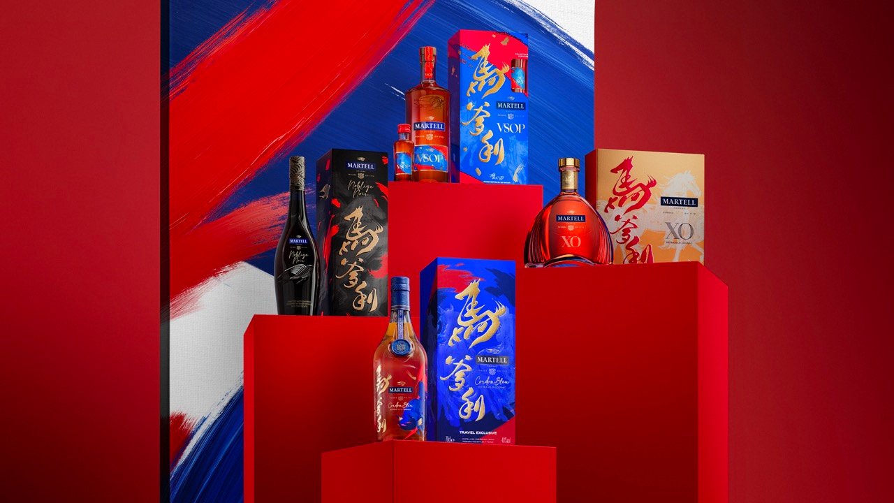El tratamiento festivo captura el espíritu del Año Nuevo chino con pinceladas rojas y azules y caligrafía dorada, combinando la herencia artesanal de Martell con un estilo contemporáneo.