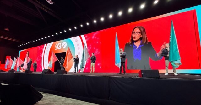 La conferencia GoTo Foods comenzó con una introducción a la marca y un ondeo de la bandera. | Fotos de Jonathan Mayes.