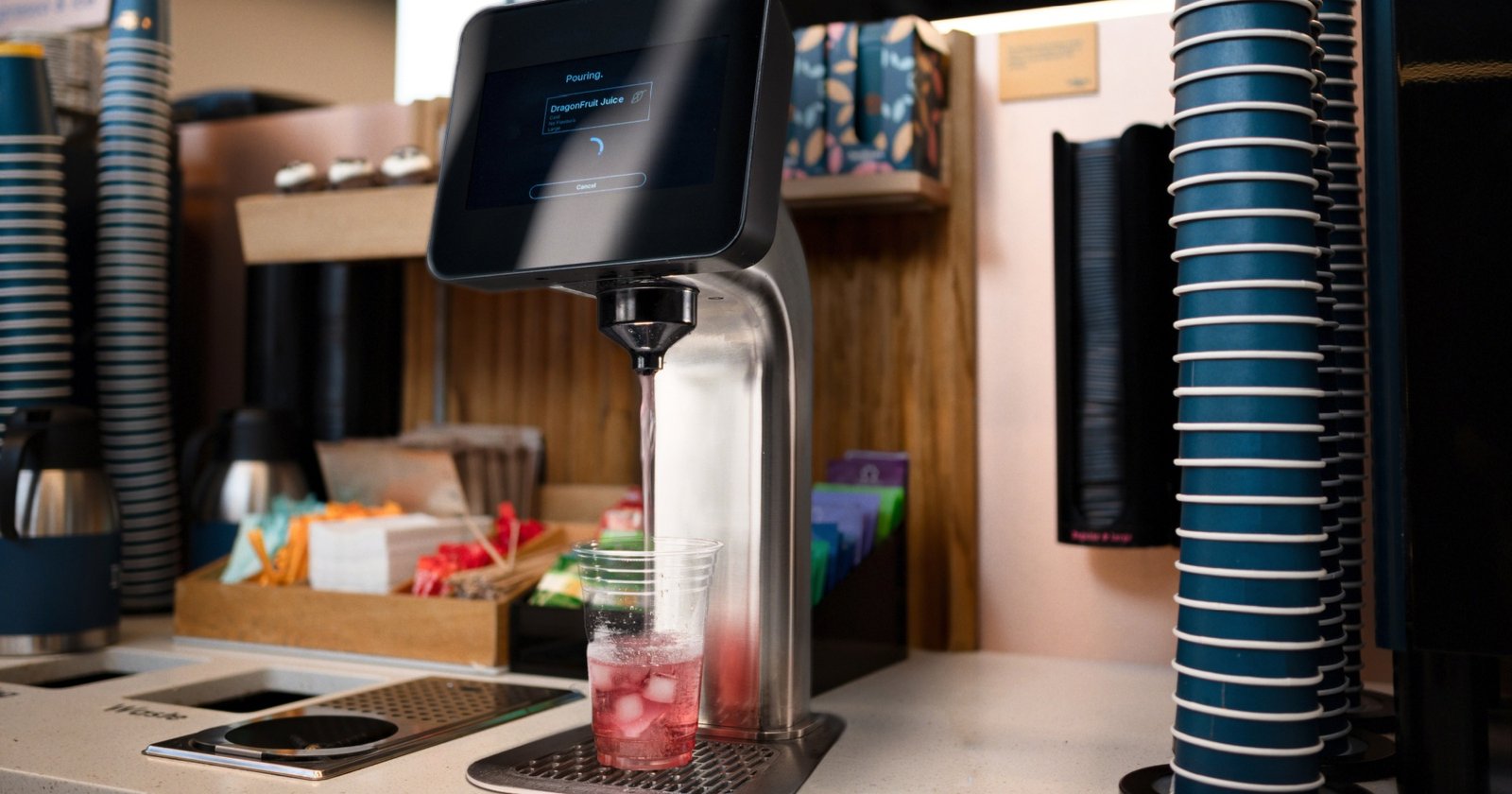 “Me gusta pensar en estas plataformas como la primera máquina de bebidas futurista que llega al mercado”, dijo Paul, dada su capacidad para dispensar casi cualquier líquido. “Podría ser, literalmente, la última máquina de refrescos o dispensador de bebidas que compre hasta que caduque”.