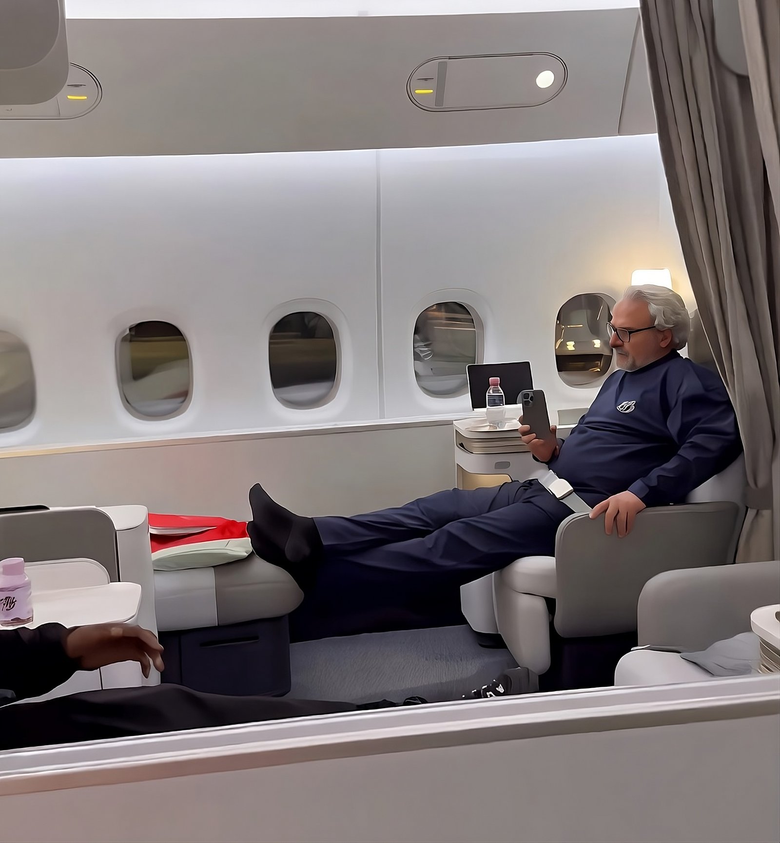 A bordo de Air France La Premiere (primera clase internacional) viajaba en los últimos días con dos acompañantes, ocupando tres de los cuatro asientos del avión. Probablemente viajaban de Los Ángeles a París y algunos comentarios sugieren que estuvieron en contacto con Milán.